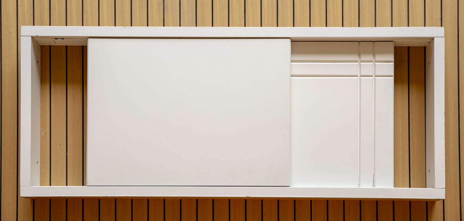Sportelli scorrevoli su misura in mdf light da 19mm, disponibile liscio o inciso.