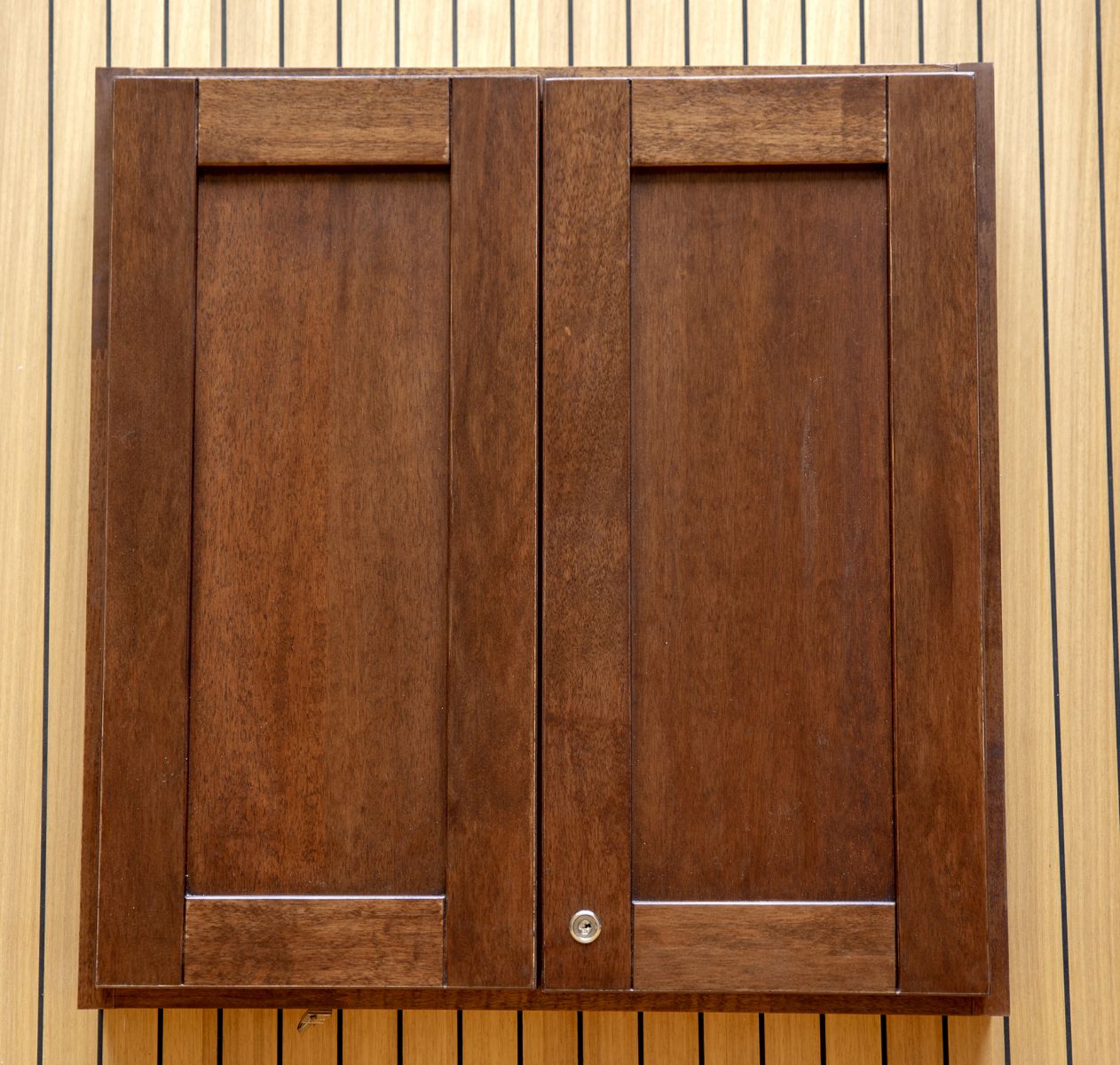 Sportello in noce tanganica su misure, telaio in legno e ferramenta Salice.