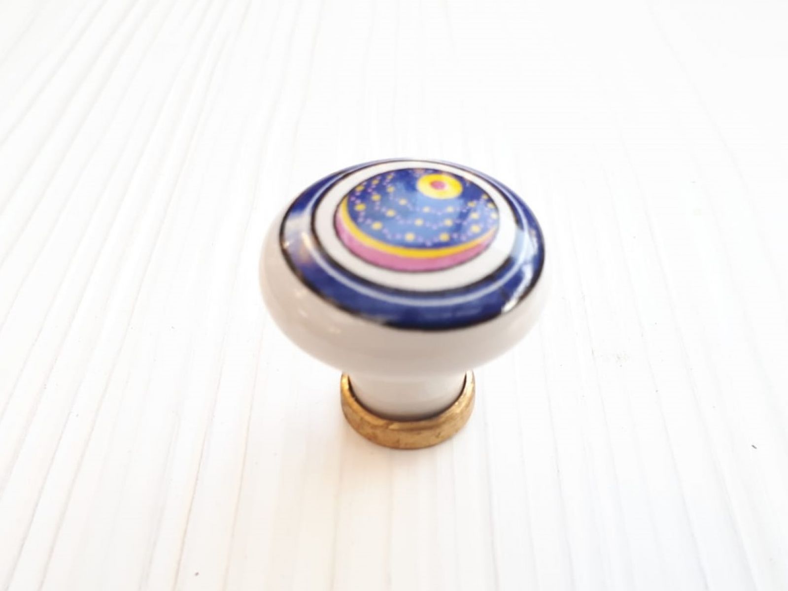 Pomolo artigianale dipinto a mano, in ceamica e base in ottone.