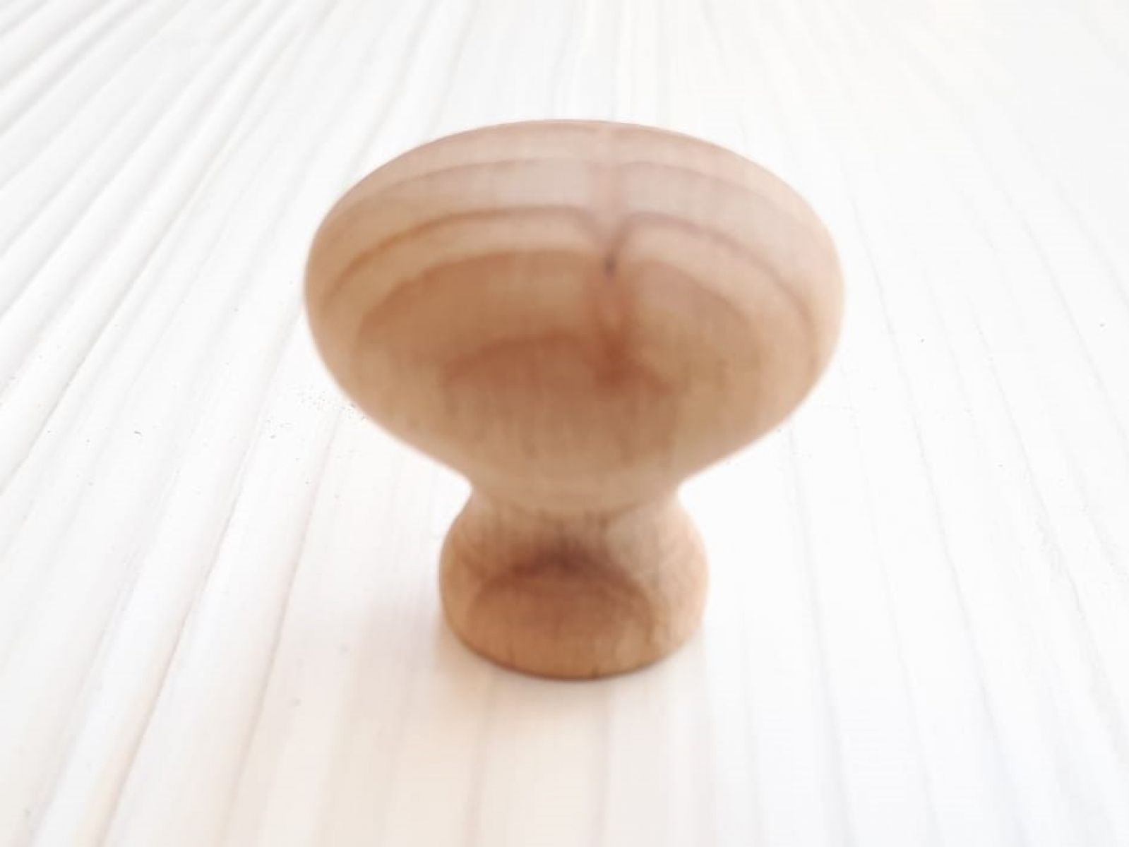 Pomolo in legno tornito grezzo, con bussola ottone.