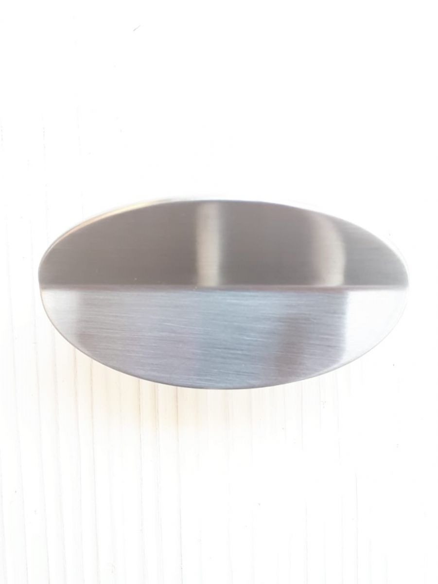 Maniglietta ovale. Disponibile cromo satinata o bianca.