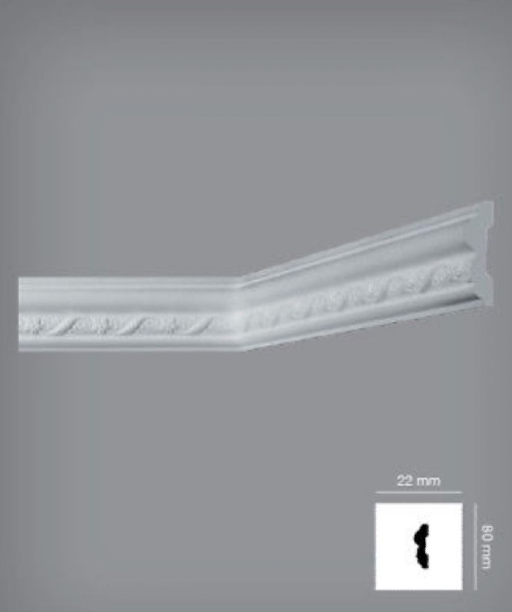 Cornice per pareti e soffitti in polistirene autoestinguente, classe1. Dimensioni 37mm x 13mm