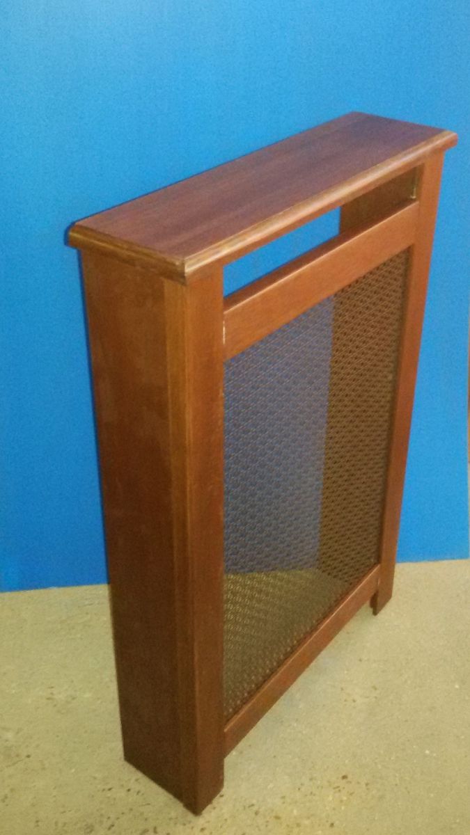 Copricalorifero in legno con rete in metallo stampato traspirante.