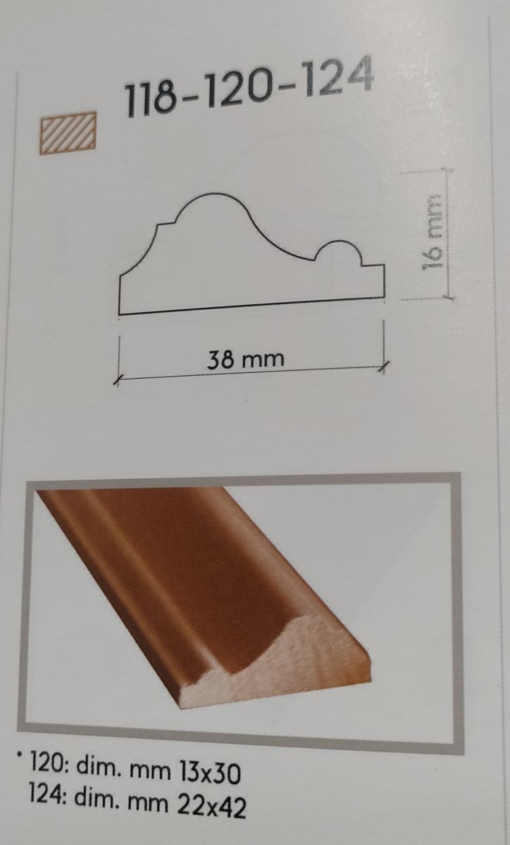 Profili o cornice in legno varie dimensioni con cod. 118 Cod. 120. Cod.124